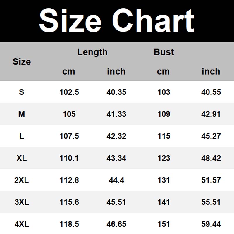 Maten: S, M, L, XL, 2XL, 3XL, 4XL